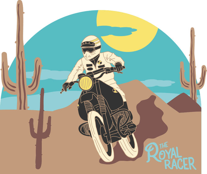 Recherche visuelle et création de stickers pour The Royal Racer, magasin d'articles haut de gamme sur la thématique de la moto rétro.